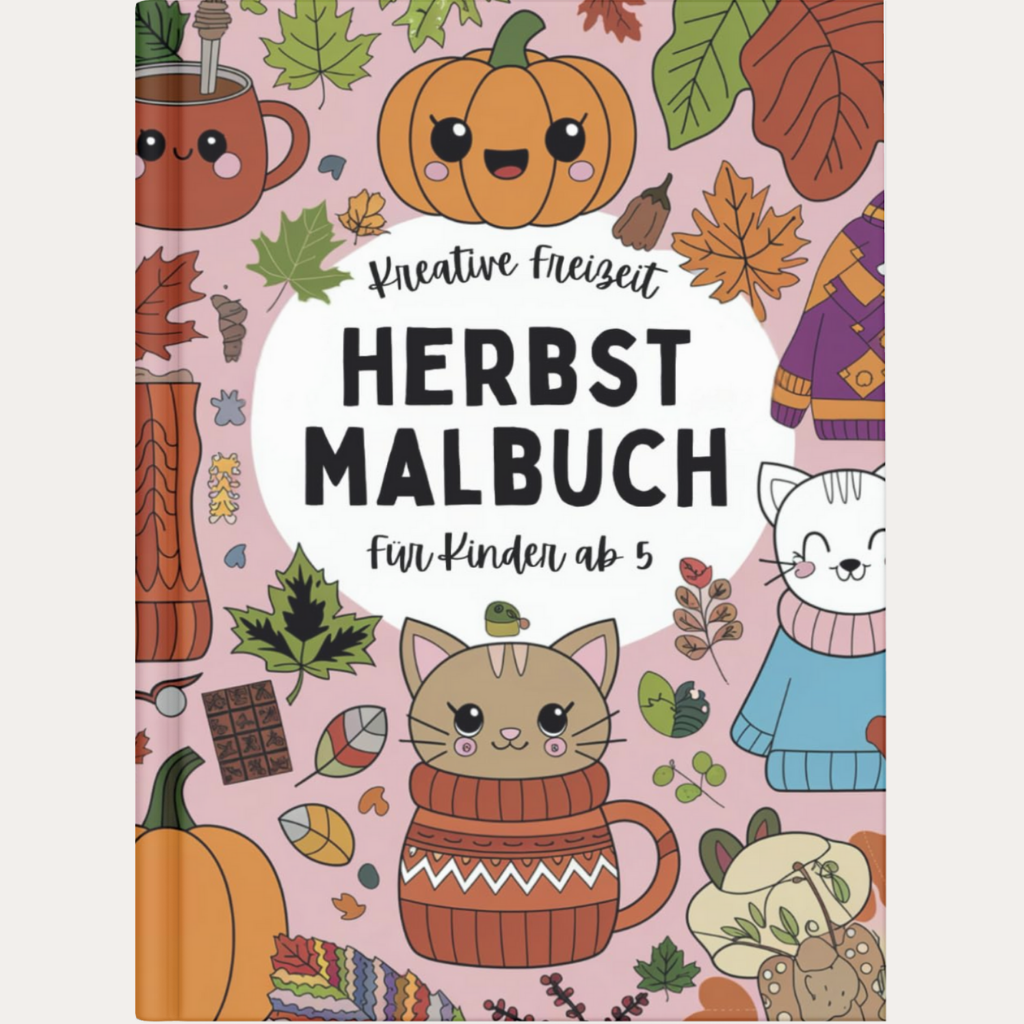 Erkunde die bunte Welt des Herbstes mit diesem liebevoll gestalteten Malbuch! Perfekt für kleine Künstler, die Kürbisse, Blätter und Tiere ausmalen möchten.
